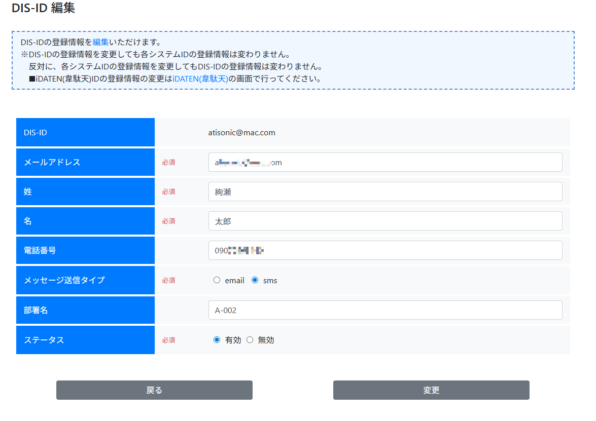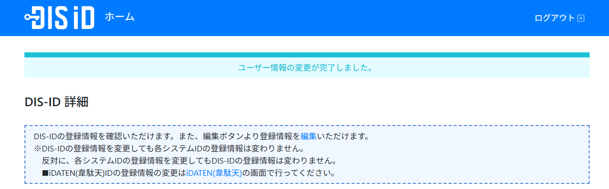 ※DIS-IDの登録情報を変更しても各システムIDの登録情報は連動して変更されません。