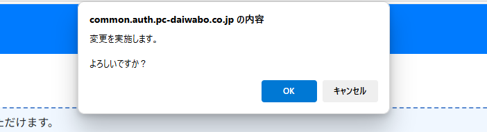 確認のポップアップが表示されますので、問題なければ「OK」ボタンをクリックします。