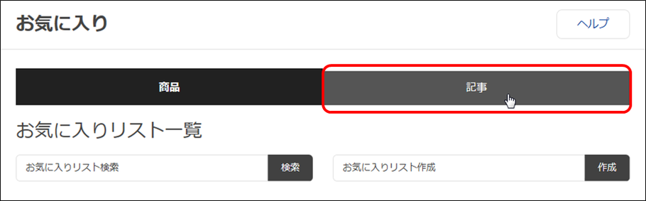 お気に入りリスト一覧より、記事のタブをクリックします。