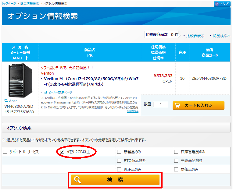 - 商品検索でスペック条件の指定ができない。 [商品検索・スペック検索]