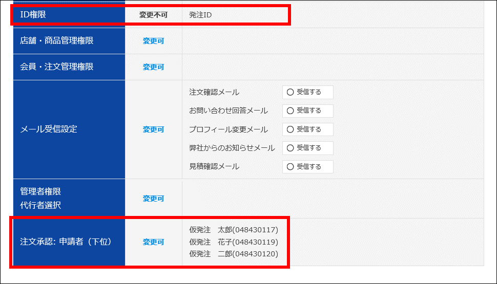 ※注文承認機能を利用するには、ID権限として仮発注IDと発注IDがそれぞれ登録されていること。