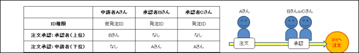 申請者(仮発注ID)が入力した仮注文を、最終承認者(発注ID)が承認する事により正式な注文として扱われます。