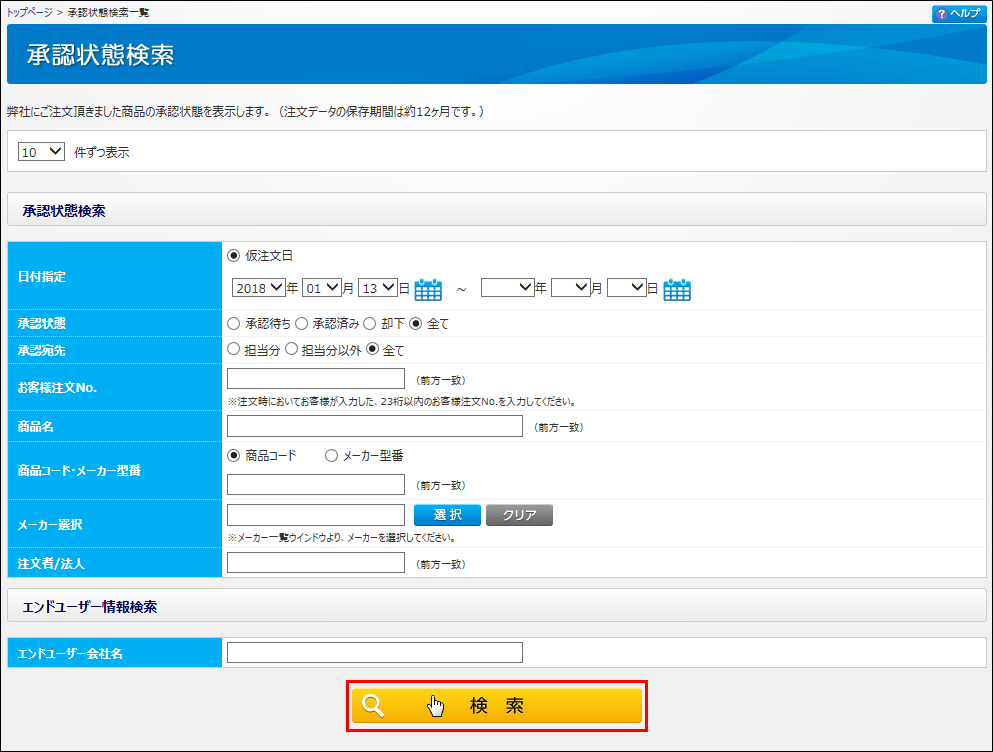 - 注文状況検索で最近注文した注文履歴が検索できない。 [注文状況検索]