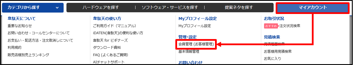 1・「マイアカウント」にある「会員管理(お客様管理)」をクリックします。