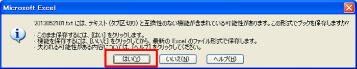 保存時に次のメッセージが出た場合は、「はい」をクリックしてください。