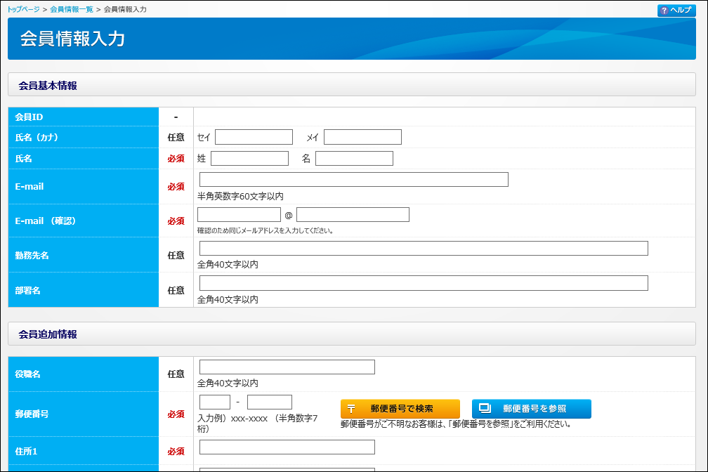 | 15 | 郵便番号 | 郵便番号を登録します。 |