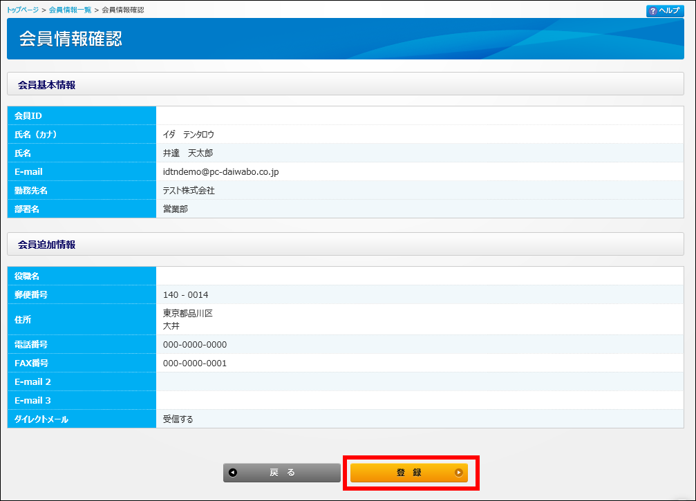 5・会員情報確認画面が表示されるので、必要な項目が入力されているかを確認します。