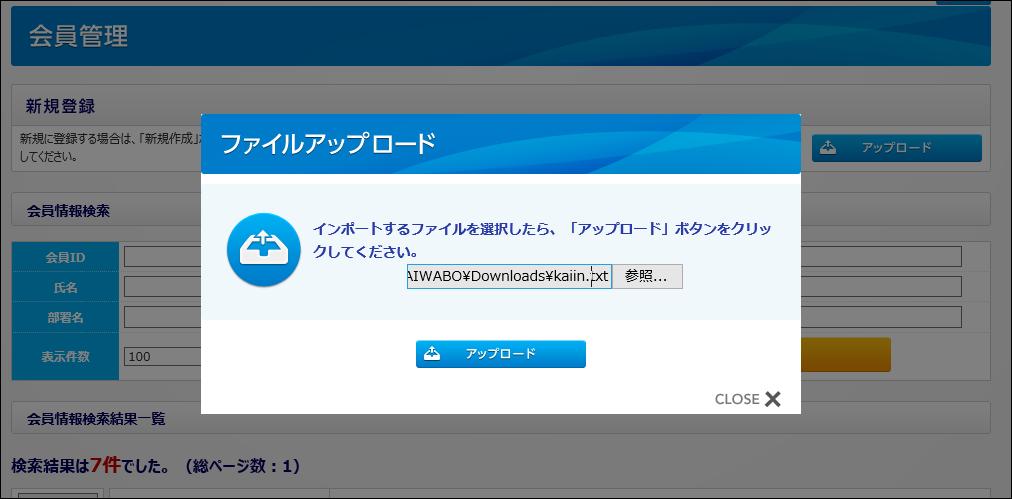 5).保存されたファイルにて会員管理の一括登録を行ってください。