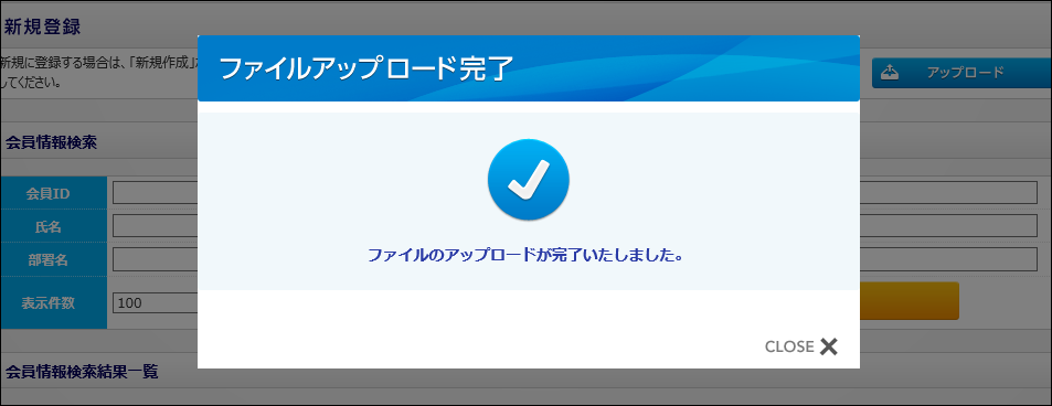 会員情報検索結果の画面にアップロードした部分が表示されていることを確認してください。