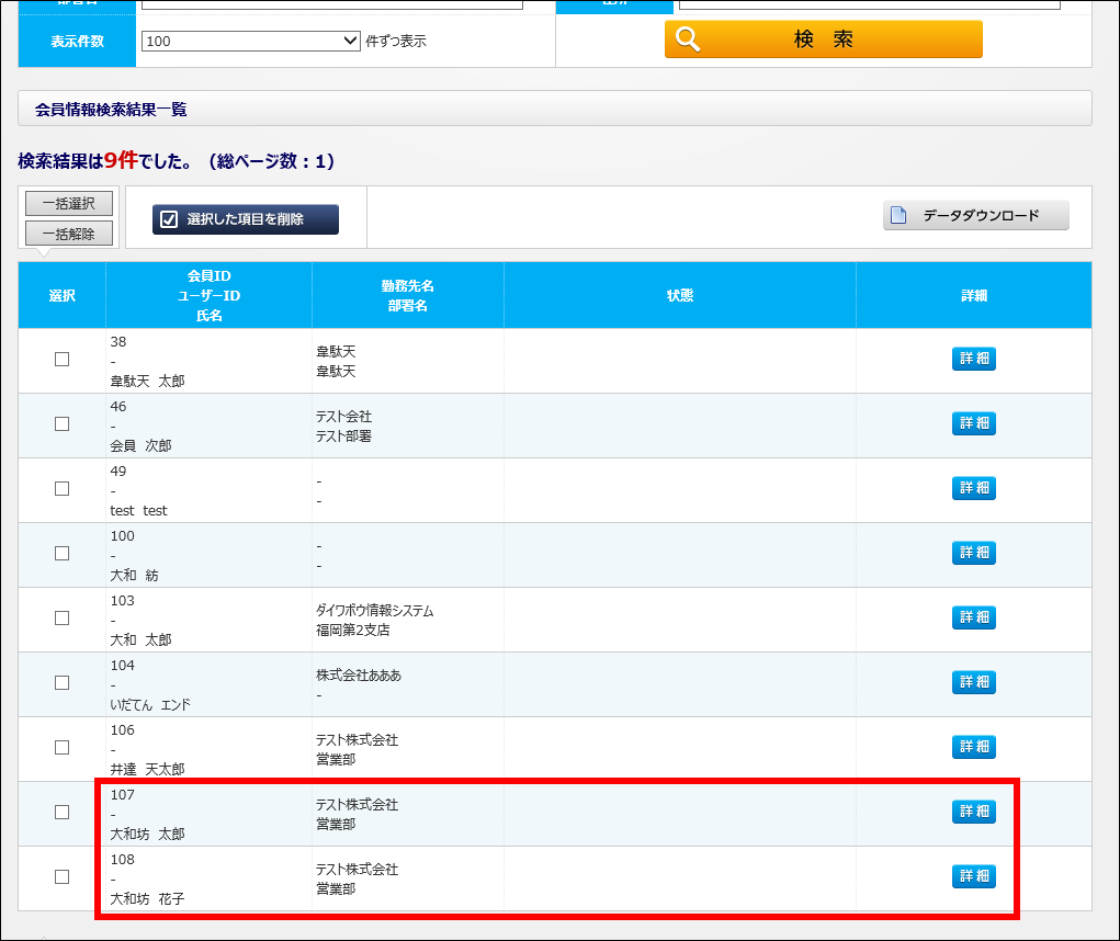 3・仮会員のステータスを選択してから会員を検索します。検索したら選択をチェックします。