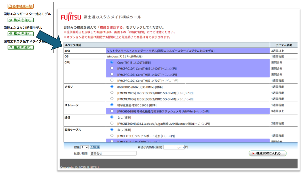 ・FUJITSU (富士通カスタムメイド構成ツール)