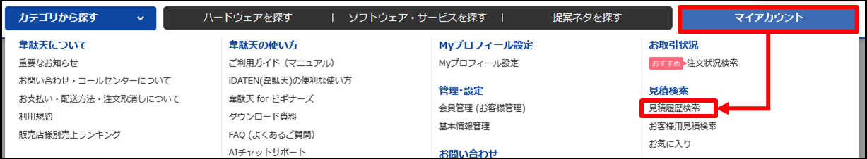 作成された見積は、iDATEN(韋駄天)の見積履歴検索から確認して注文する事ができます。