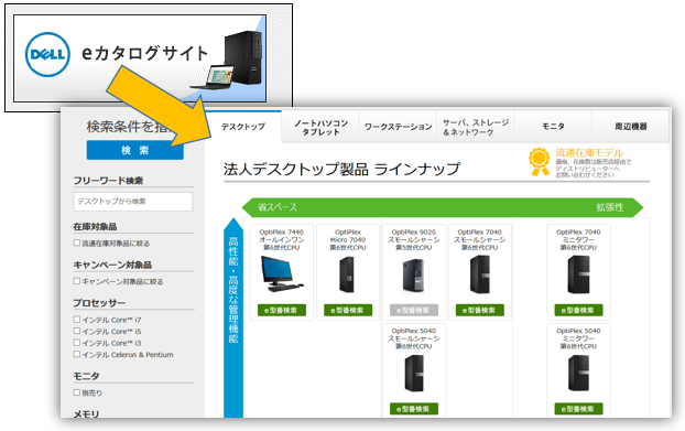 ※下図で例として説明しているDELL(デルeカタログサイト)は運用変更により現在は利用できません。