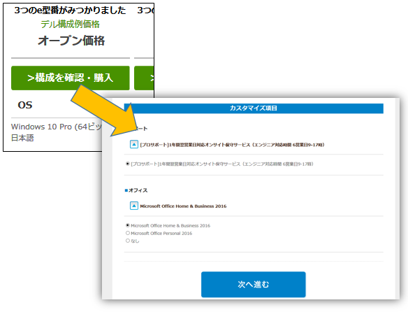※下図の説明では、例としてFUJTSU(富士通カスタムメイド構成ツール)の画面を使用していますが、他メーカーも全体の流れはほぼ同様です。