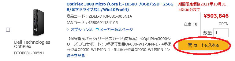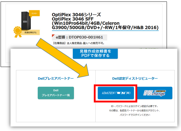 選択した商品の内容を確認の上、DELLの場合は「iDATEN(韋駄天)」のリンクボタンをクリックします。