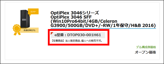 メーカーサイトに表示されている、「e型番」(DELLの場合)は、iDATEN(韋駄天)ではメーカー型番として登録されています。