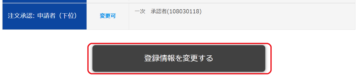 ※設定変更を行う前に必ず「一次承認待ち」(未承認)の仮注文は、一次承認者に承認・却下をしてもらってください。