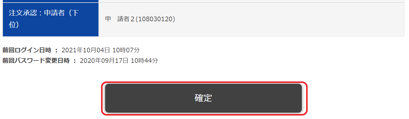 3・注文承認:申請者(下位)の欄に、既に設定してある一次承認者が表示されるので、