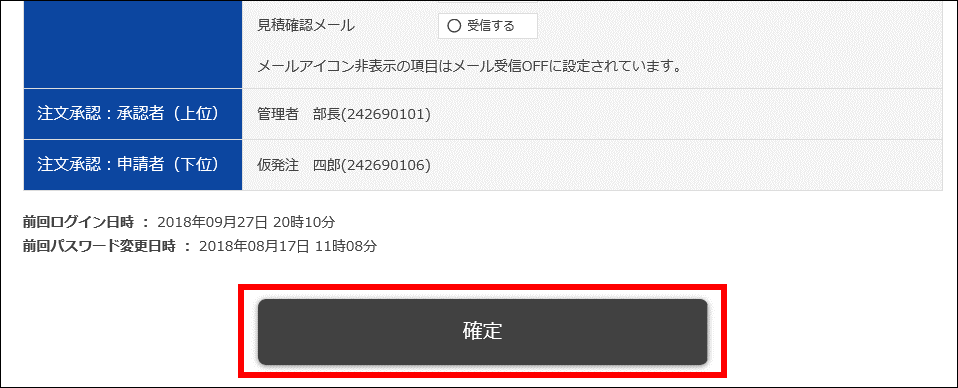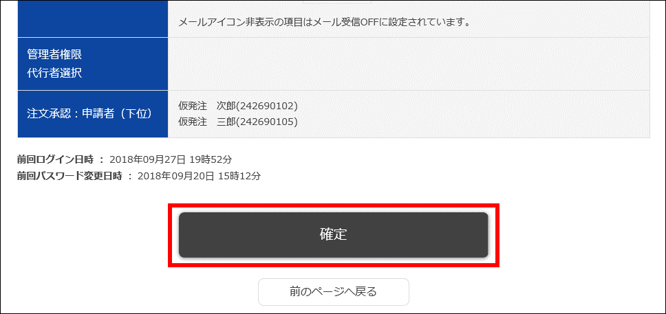 ※これより後は、一次承認者として設定された仮発注IDの利用者にて設定を行います。