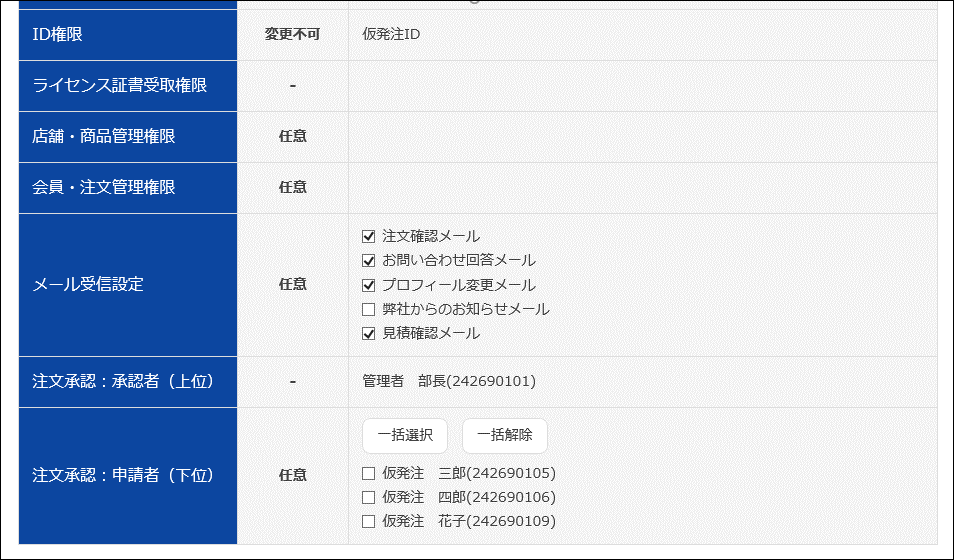 ※注文承認機能を利用するには、ID権限として仮発注IDと発注IDがそれぞれ登録されていること。