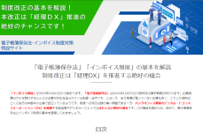 本サイトでは、改正電子帳簿保存法とインボイス制度の概要説明や、対応にかかる準備・スケジュール等を分かりやすく解説しています。お客様へご提案する際に、または自社で対応を検討する際の情報収集にお役立てください。